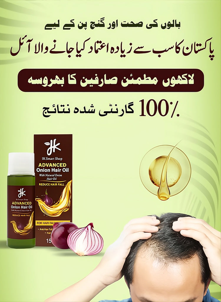 Advanced Onion Hair Oil ایک جدید اور قدرتی فارمولا ہے جو خاص طور پر بالوں کی جڑوں کو مضبوط بنانےکے لیے تیار کیا گیا ہے۔